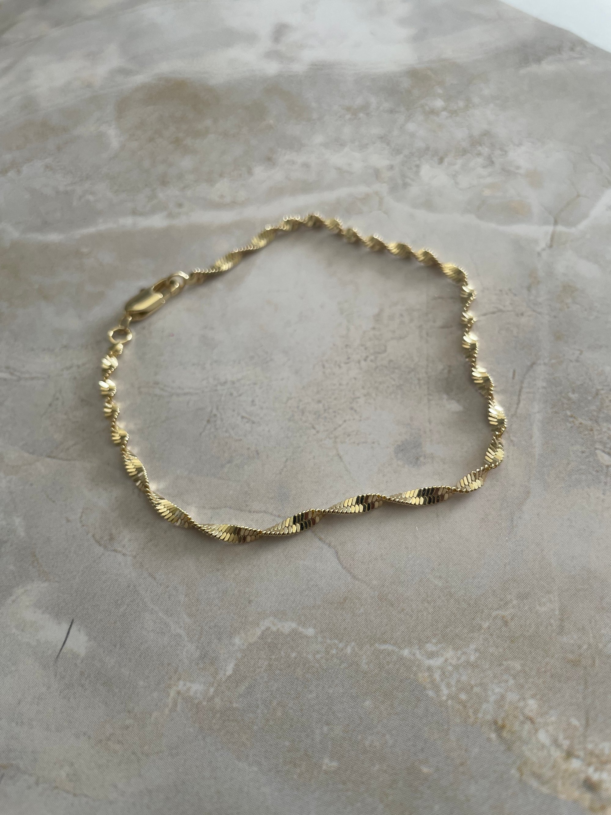 His mercies are new every morning, and His Grace is for eternity. Our Eternal Grace bracelet is a delicate celebration of love that never fails. Featuring a sophisticated twisted-link design in 18K gold-filled, this piece is crafted to catch the light from every angle, reflecting the constant presence of His spirit in your life. The 'eternal' twist of the chain represents faith that is unbroken and a Grace that has no end. Because it is gold-filled this bracelet is designed for longevity, making it a perfect daily staple for the woman who walks in the assurance of her divine worth. Pair this bracelet with any of the other bracelets in the Redemption Collection.