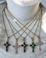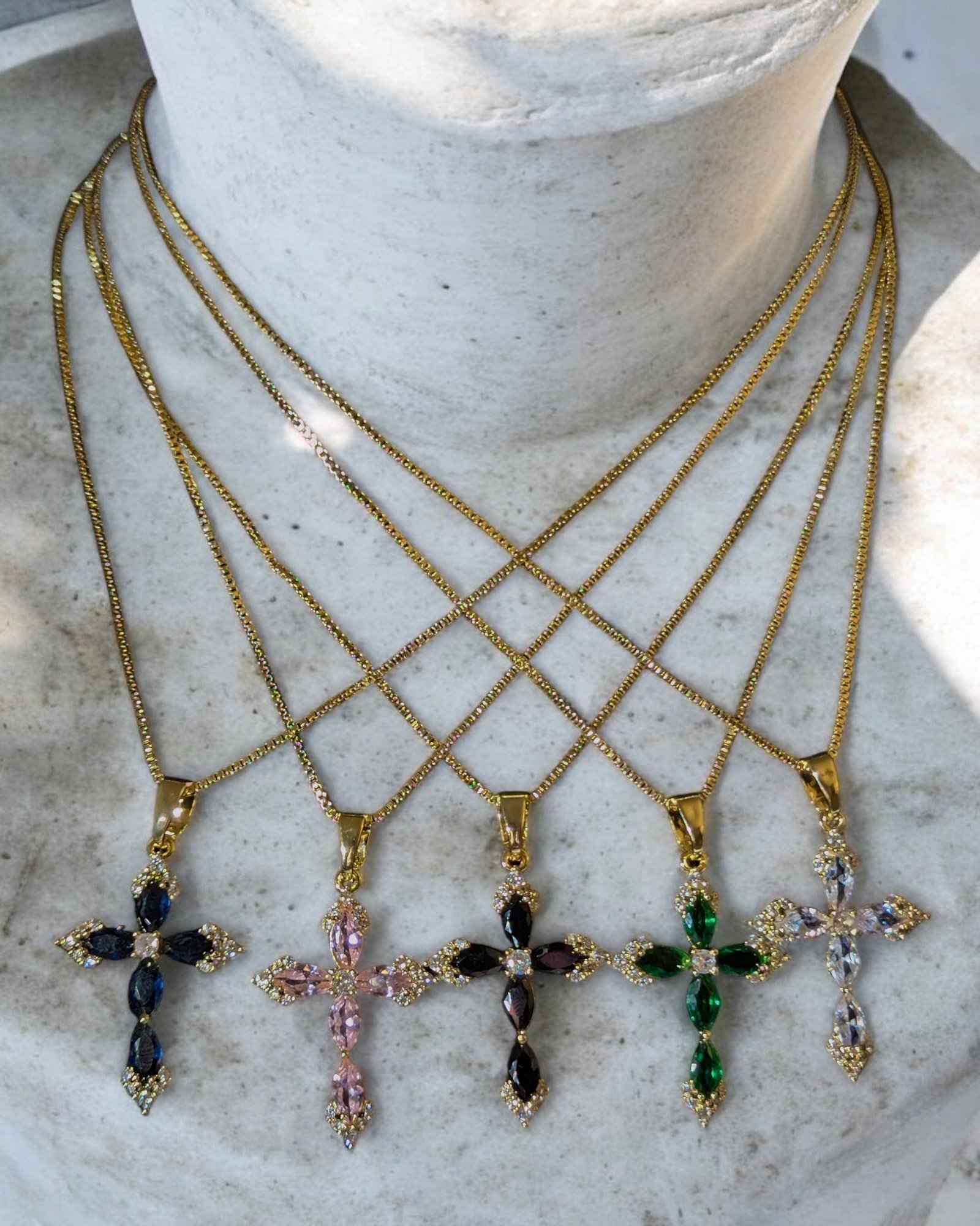 Each cross features 5 Marquise-cut stones, symbolizing the wounds Yeshua bore for our healing. Set on a shimmering 16" 18K gold-filled chain, these necklaces are designed to sit close to your heart, serving as a daily reminder of your identity as a child of The Most High!